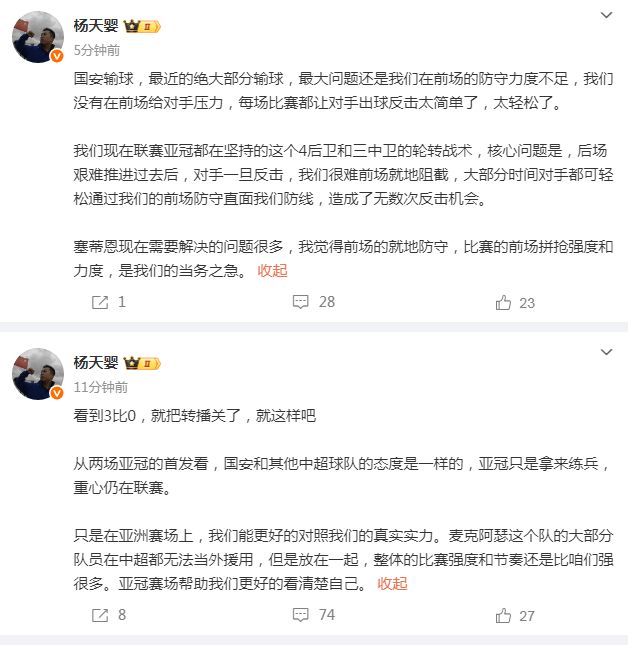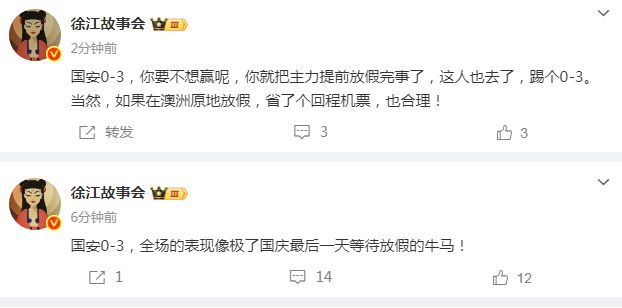 雷速体育10月2日讯 亚冠二级联赛第2轮的对决中,北京国安做客0-3完败给澳超球队麦克阿瑟。媒体人赛后集体怒批国安丢人现眼,甚至表示,如果不上主力就该给主力直接提前放假,根本不想赢球。 媒体人徐江用一个形象的比喻来点评这场比赛,“国安0-3,全场的表现像极了国庆最后一天等待放假的牛马!你要不想赢呢,你就把主力提前放假完事了,这人也去了,踢个0-3。当然,如果在澳洲原地放假,省了个回程机票,也合理! ​​​” 媒体人陆洋则毫不客气表示,这是中超球队本周唯一丢人的外战,“本周外战唯一丢人现眼的比赛,踢亚二踢到这个份上,很难找出什么借口。有趣的是如果年底拿了足协杯,还能锁定一个明年打亚精的机会,有点儿不知说啥好了。” 北京媒体人杨天婴则认为,国安给对手的机会太轻松了,“我们现在联赛亚冠都在坚持的这个4后卫和三中卫的轮转战术,核心问题是,后场艰难推进过去后,对手一旦反击,我们很难前场就地阻截,大部分时间对手都可轻松通过我们的前场防守直面我们防线,造成了无数次反击机会。” 而北京媒体《足球100分》栏目,也直言不讳指出球队表现无法令人满意,“比赛结束,北京国安客场0比3不敌对手,亚冠二级联赛小组赛两轮仅一平一负,成绩难以令人满意。 ​”