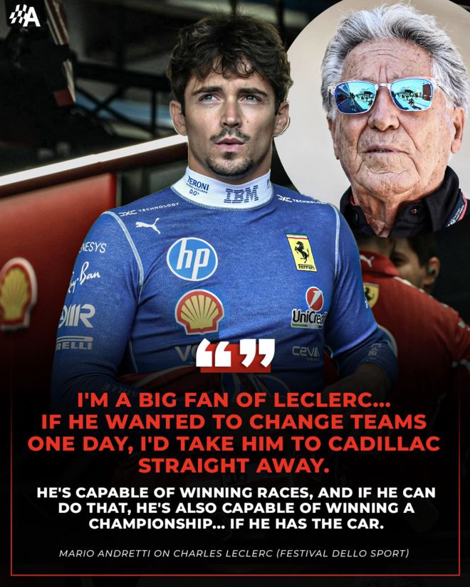 下赛季F1,凯迪拉克车队即将出现在发车格上,佩雷兹和博塔斯的组合在官宣的那一刻就已经让一众车迷颇为振奋。而近日,作为凯迪拉克车队进入F1的幕后推动者,马里奥·安德雷蒂向现法拉利车手勒克莱尔抛出了橄榄枝。