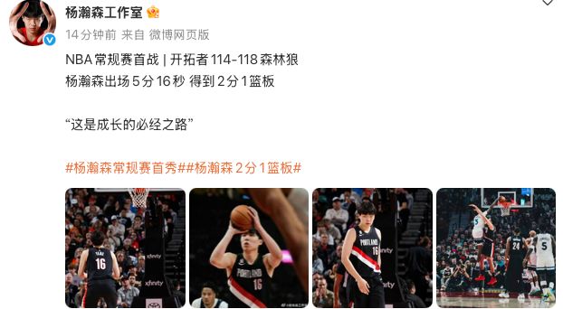 首秀2分1篮板!杨瀚森工作室:这是成长的必经之路