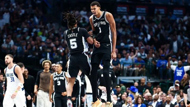 两场比赛,两项历史纪录,升至西部榜首,文班亚马用最直接的方式宣告了新时代的到来。他不是简单的"杜兰特+字母哥"结合体,而是开创了"七尺后卫"的全新球员模板——既有中锋的护框能力,又有后卫的持球技巧,还有锋线的得分爆发力。马刺的崛起与文班的爆发,正在改写西部乃至整个联盟的格局。