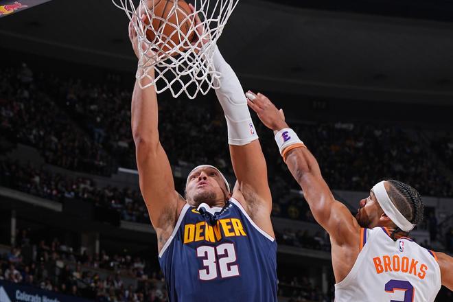 理由三:掘金全面提升更重要的是,相比于前一个赛季,本赛季掘金队全面提升,尤其是替补内线瓦兰的加入,大幅降低了约基奇所要承担的防守、轮转与篮板压力。加上戈登、穆雷等核心球员均状态火爆,回归老东家的布鲁斯布朗也无缝融入,这让约基奇在进攻端完全不必频繁采取个人强攻,拿下助攻的难度也随之下降。新赛季至今两场比赛都是这样,约基奇完全不注重个人进攻,而是将串联全队摆在首位,这也让其连续两场轻松拿下三双。