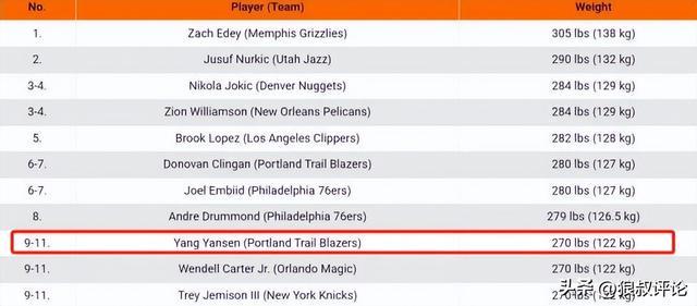 北京时间10月26日,知名媒体人杨毅在播客节目提到开拓者目前队内的空间属性,以及杨瀚森的增重话题。杨毅表示:“大家可以仔细观察开拓者这个球队,空间很差,包括阿夫迪亚也不怎么投,全队没有多少能投,杨瀚森再进去,还怎么突破?就指望杨瀚森拉开空间。所以杨瀚森的体重没有必要再上去了,他已经122公斤了,5月份联合试训的时候,杨瀚森官方体重才114公斤,经过了这个夏训,他已经涨了8公斤了。” 其实(增重速度)已经很快了,他在整个NBA体重已经排第九了,已经不轻了,再涨体重就不是那个事,要考虑能不能负荷,杨瀚森最好的体重最好不应超过125公斤,再涨到130公斤就影响你的移动能力,目标应该是保持体重,提升肌肉含量,提升对抗。卧推也得提高,中锋里面,卧推力量是最重要的,篮下对抗,篮板球手要起来。杨瀚森去NBA之前,卧推推不起100公斤,联合试训才95公斤,CBA很多球员能推120公斤,杨瀚森还小(当时不足20岁)。 杨瀚森目标至少要推到120公斤以上,当初大姚是能推到150公斤,当时和体重上来有关,但体重上来了,受伤的风险就越大。正如媒体人杨毅提到那样,杨瀚森目前的静态天赋,足够他在NBA尝试站稳脚跟的资本,但想要更上一个层次,力量,对抗非常重要。与CBA时期相比,目前杨瀚森已经超过了20岁,身体发育渐渐完善,慢慢可以在力量训练方面增加,尤其是核心力量,卧推,与大部分的NBA中锋相比,杨瀚森对抗还不足以达到NBA内线平均水平以上,这也是为什么很多时候杨瀚森只能通过犯规去阻挡对手。若是想要充分发挥杨瀚森高位发牌,以及策应等特点,杨瀚森其他方面的表现需要达到平均水平以上,考虑到新赛季仅仅是菜鸟赛季,杨瀚森与大部分的新秀球员相比,实际上年龄还是偏小。