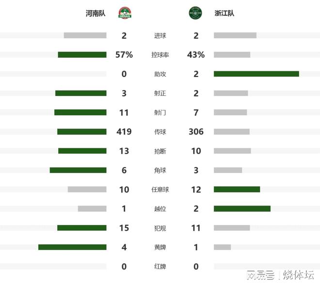 比赛焦点1、此役河南队被绝平无缘连胜,总积分提升到33分,仍排名积分榜第11位。2、浙江队惊险拿到1分,迎来联赛4连平,总积分提升到41分仍排名第七。进球时刻第19分钟,卡多索高速推进到禁区射门被赵博扑出,可是后续跟进李提香没收住,不慎将球挡进自家大门,河南队主场1-0领先。
