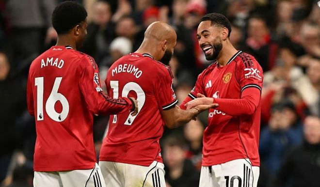 坐镇老特拉福德球场,曼联取得了不错的开局,第24分钟依靠库尼亚的兜射破门,比分1-0领先,随后第34分钟,卡塞米罗帮助曼联2-0再下一城。下半场,曼联继续接管比赛。第61分钟,姆伯莫低射破门,帮助曼联3-0领先。尽管随后第75分钟、第92分钟,布莱顿依靠维尔贝克的任意球破门、科斯图拉斯头球破门,将比分追到2-3,随着最后时刻姆伯莫抽射破门,帮助曼联4-2锁定胜局,取得联赛三连胜。据统计,这是曼联自2023年8月以来首次取得英超主场四连胜,也是是本赛季至今英超主场拿分最多的球队,5场比赛拿到12分。纽卡斯尔2-1富勒姆