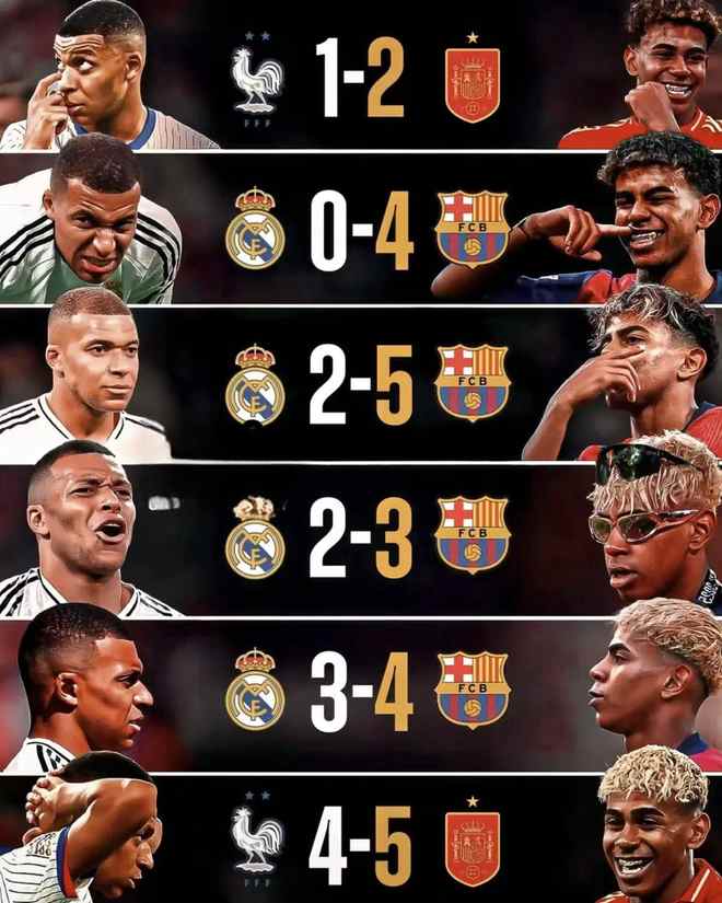 - 西甲 | 苦主,姆巴佩面对亚马尔已遭遇6连败
