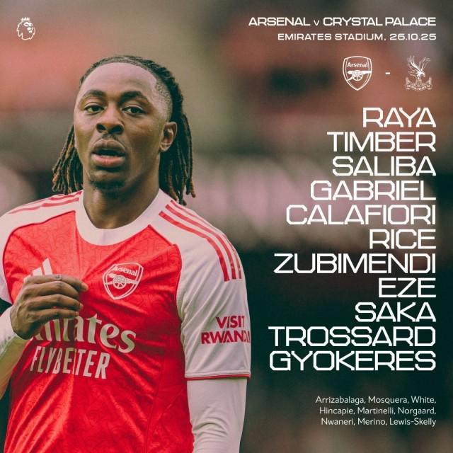 - 英超 | 阿森纳vs水晶宫:埃泽首发面对旧主,哲凯赖什、萨卡出战