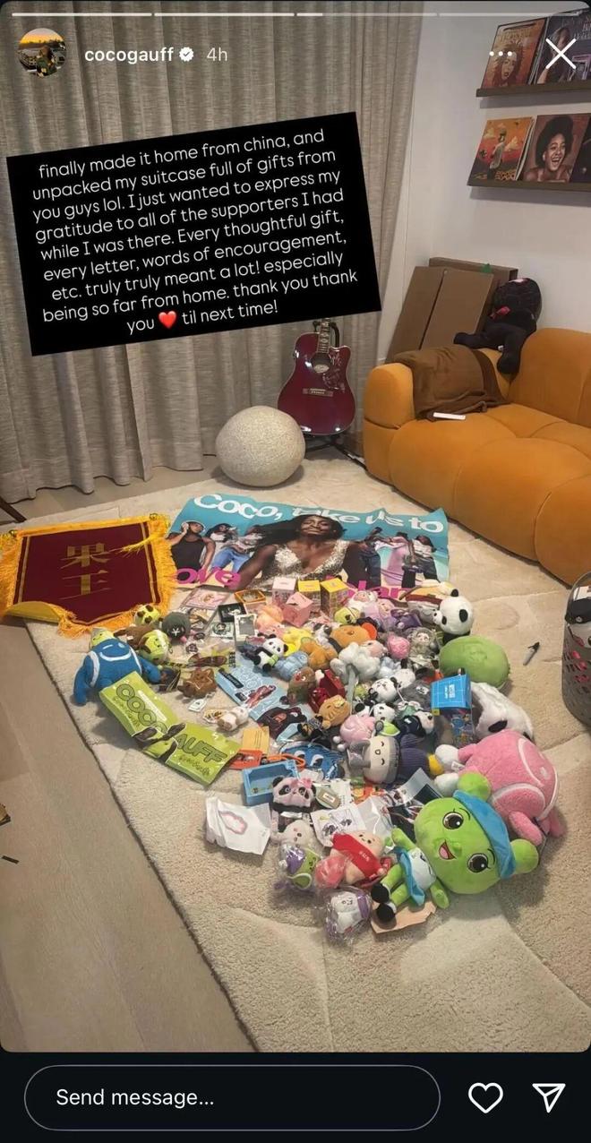 粉丝们可以制作表情包、剪辑视频、设计周边,为爱发电,助力偶像“出圈”。高芙在中国赛季后于Ins晒出了粉丝赠送的各色礼物,是对这份热爱温柔的回应——比赛可以落幕,但跨越山海的情谊,却绵延不绝。