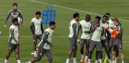 在周三的训练中,维尼休斯因在国家德比中的行为向队友道歉成为焦点,而周四皇家马德里再次进行训练,目标直指周六与瓦伦西亚的对决。尽管阿拉巴、卡瓦哈尔和吕迪格依然缺席,但球队仍在笼罩首都的阴雨天气下展开训练。本次训练以战术演练为主,但也安排了体能训练以及有球和无球练习。像马斯坦托诺、塞瓦略斯这些渴望在周六比赛中争取上场时间的球员表现得格外积极,而像姆巴佩和贝林厄姆这样的绝对主力则在国家德比后继续恢复状态。