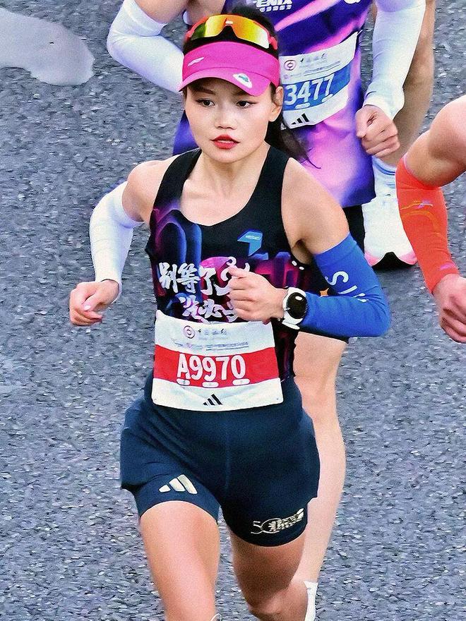 跟着三万大军出发,佟美仪以420左右开跑,一路接近半程时,耳机提示她低电量。那时,她的心态有些崩。随即开始关了耳机随缘跑。放飞自我但却找到了另一种感觉。到30公里时,佟美仪看到赛道外给她加油的爸妈,兴奋让她把配速加到405。用她的话形容,自己跑容易忽快忽慢,快了赶快压,慢了又乱提速。直到最后3公里时,体感有些痛苦,但她算时间发现能破三,于是在濒临抽筋的状态下,还是咬牙加速,完成了破三。