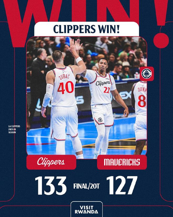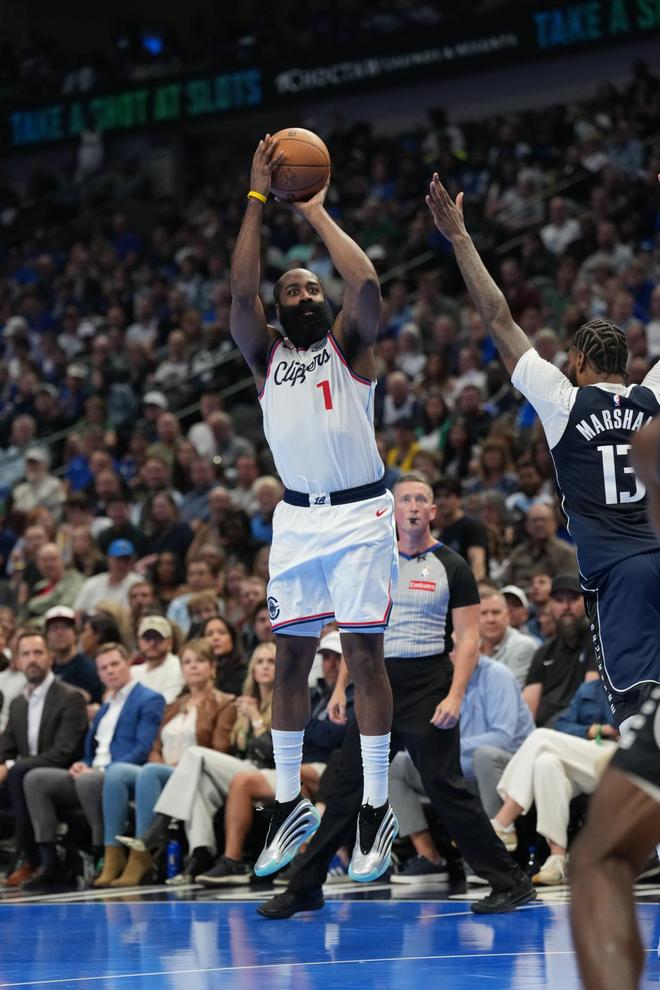 末节决战,快船多点开花,再次取得两位数领先。达拉斯依靠着冲击内线努力追分,快船却突然陷入得分荒,独行侠在拉塞尔、马绍尔、弗拉格等人的率领之下,轰出了11比0的攻势,得以将比分追平。此后,两队陷入苦战,比分多次战平。关键时刻,拉塞尔持续进攻得手,不过,他错失了抛投绝杀,两队携手以114平进入加时赛。加时赛里,两队继续缠斗,祖巴茨与弗拉格在禁区对轰,哈登连中远投,帮助快船取得领先。弗拉格单打命中,达拉斯又一次追平了比分。哈登绝杀球被封盖,两队携手以123平进入第二个加时赛。哈登顶住了压力,轰进关键远投,率队又一次占据场上主动权。达拉斯众将体能透支,连续出现失误和远投不进,快船稳扎稳打,得以收下了比赛。最终,快船以133比127险胜对手。哈登出手关键三分球