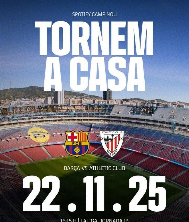 官方确认:巴萨正式回归 Spotify 诺坎普球场!巴塞罗那俱乐部已于今日(2025年11月17日)通过官方社交媒体宣布:球队将于本周六(11月22日) 在翻新后的 Spotify 诺坎普球场迎战毕尔巴鄂竞技,这标志着红蓝军团在阔别主场 915 天 后,终于重返梦开始的地方。