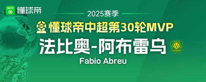 懂球帝2025赛季中超第30轮MVP:法比奥阿布雷乌
