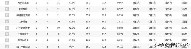 值得一提的是四川男篮成为目前唯一尚未取得比赛胜利的球队,战绩为0胜8负,排在积分榜倒数第一。