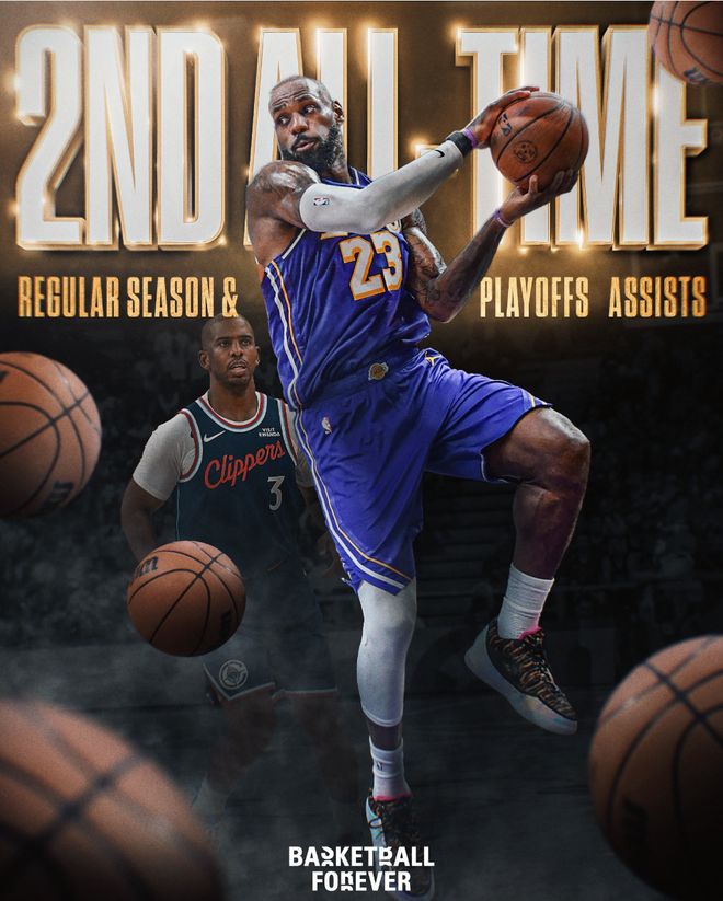 此役勒布朗的历史总助攻还超过了克里斯-保罗升至历史第二位,他也是NBA历史首位得分第一+助攻第二的球员,41岁的他即将打破51000分大关。